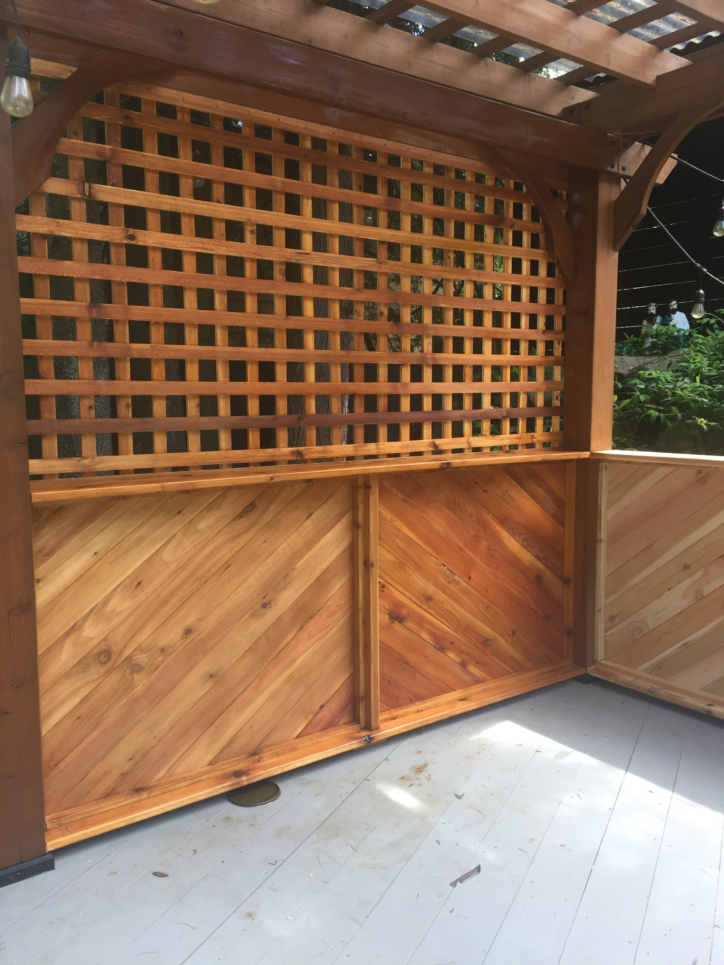 backyard cedar pergola & 1/2 enclosure with lattice